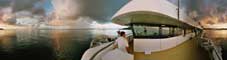 Off Yaqeta Island, Yasawa Islands Group File size 61 kB. Choose JPEG or Java Viewer. A very nice evening mood at sunset on our second cruise day, only seconds after a rainbow straight ahead had faded away. Our ship "Fiji Princess", a french-built catamaran, had only very recently been acquired by Blue Lagoon Cruises which was probably why we were given a free upgrade to this Gold Club Cruise. We saw no reason complaining...