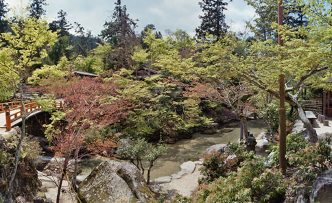 Path to ropeway, Miyajima File size 70 kB. Only JPEG. Not a particular sight as such, but the small creek with its almost too neat pebble foundation, the red bridge and the "typical" Japanes vegetation caught my attention.