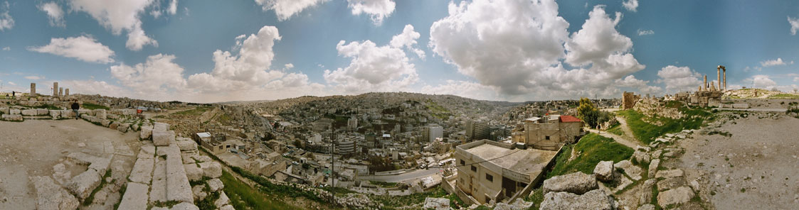 Amman File size 92 kB. Choose JPEG or Java Viewer. Amman is considered a very modern arabic city, but the impression you get from the Citadel is different. The enforced uniformity of small stone buidlings sprawling everywhere gives it a touch of a distant past - even though Amman was not much more than a small town 50 years ago.