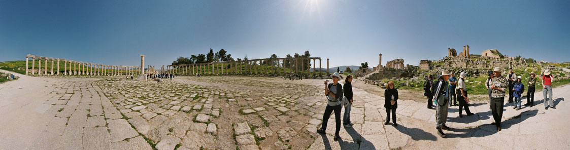 Jerash - Oval Plaza File size 86 kB. Choose JPEG or Java Viewer. Our group on Jerash's former Roman Forum, quite large and oval for a change.