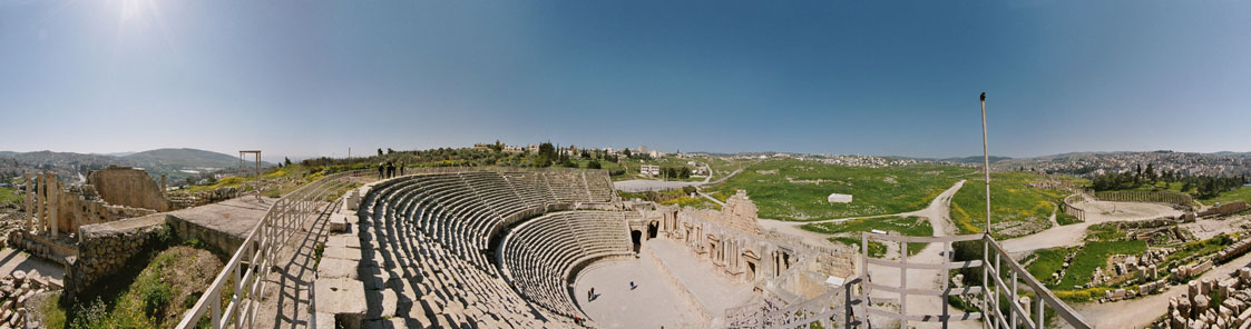 Jerash - South Theatre File size 86 kB. Choose JPEG or Java Viewer. Jerash's ruins do not need much imagination. The Nymphaeum, for instance, is remarkably well preserved up to its original two stories. Or the South Theatre, on the very southwestern edge of Jerash.