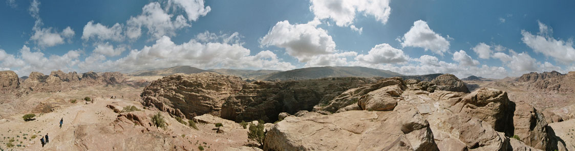 Petra - Descent from High Place of Sacrifice File size 101 kB. Choose JPEG or Java Viewer. Hiking down on the west side of the High Place of Sacrifice enables you to see zillions of tombs along the way. Notice the so-called Roman Tomb down in the valley on this steeper part of the hike.